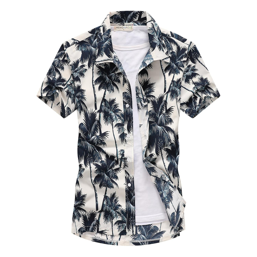 2019 Fashion Mens Short Sleeve Hawaiian Shirt Fast drying Plus Size Asian Size M-5XL Summer Casual Floral Beach Shirts For Men